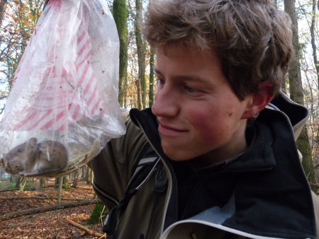 Op zondag 1 november hebben mensen van de Zoogdierwerkgroep op elf locaties muizenvallen uitgezet. Per locatie zijn tien vallen uitgezet, allen om de tien meter. In totaal is dus met 110 vallen gewerkt. Vanaf zondag 1 november tot en met vrijdag 6 november stonden deze vallen op ‘safe’. Dit houdt in dat het valmeganisme geblokkeerd was; muizen konden naar binnen én naar buiten lopen. Hierdoor wennen de muizen aan de vallen. De vallen waren gedurende deze periode alleen gevuld met hooi.