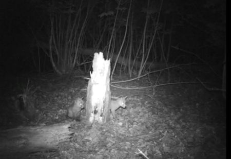 Binnenkort mogen ze met moeders mee gaan jagen maar nu is het nog vooral onderzoeken. Bekijk de twee jonge vosjes in de nacht.