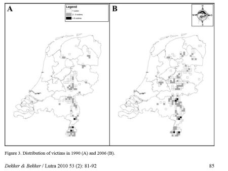 Om de effectiviteit van deze maatregelen te kunnen nagaan werden vervolgens in de periode 1990-2006 gegevens over het voorkomen van dassenslachtoffers verzameld. Jasja Dekker en Hans Bekker presenteren in Lutra de onderzoeksdata, tonen de verdeling van slachtoffers over wegtypen en toetsen of maatregelen een afname van slachtoffers tot gevolg hadden.