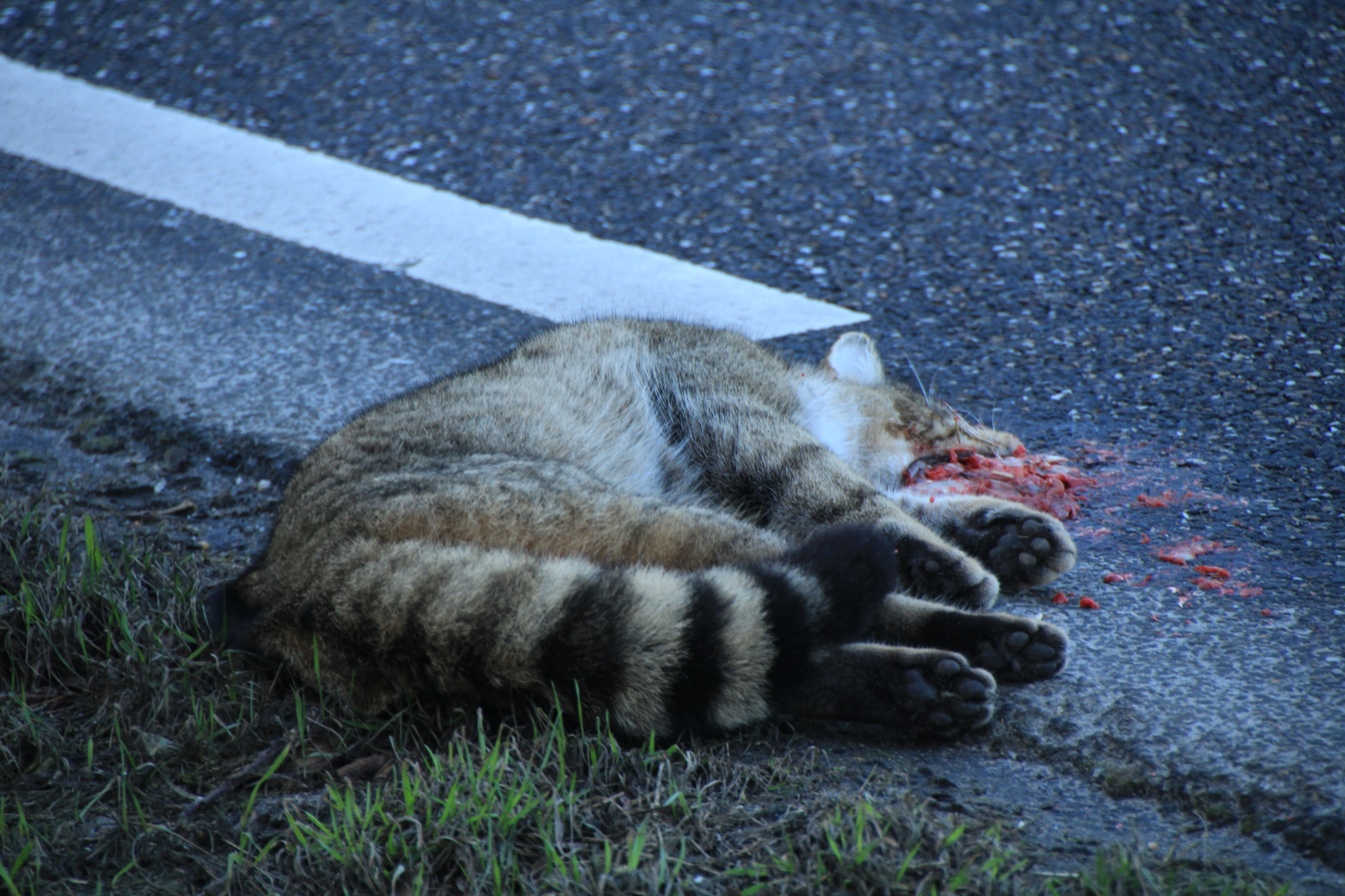 De doodgereden wilde kat (foto: Olaf Op den Kamp).