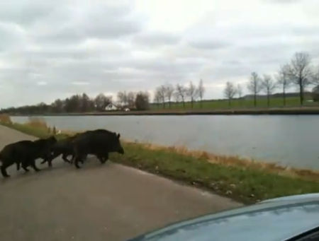 Wilde zwijnen in het kanaal (VIDEO)