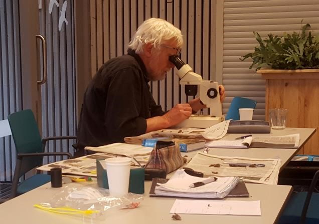 Impressie van het uilenballen pluizen op derde kerstdag (Bron: Nico Jonker en Kees Mostert).