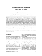 Contents / Inhoud Editorial / Redactioneel Carnivores: introductions and alien invasive species Johan Thissen Research papers / Artikelen Bat box occupancy by noctule and brown long-eared bat Martijn Boonman & Erik Broer Case study on the use of a high-mounted agrivoltaic system by mammals – results... -