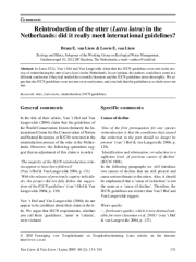 In Lutra 47(2), Van ‘t Hof and Van Langevelde claim that the IUCN guidelines were met in the process of reintroducing the otter (Lutra lutra) in the Netherlands. In our opinion, the authors would have come to a different conclusion if they had studied the scientific literature and the IUCN guidelines more thoroughly. We argue that the IUCN guidelines were not met on several points, and conclude that the guidelines as a whole were not met.