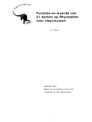 De opdracht voor de Zoogdiervereniging VZZ bestond uit het inventariseren van het gebruik van 21 bomen in een laan op het landgoed Rhynestein te Cothen. De oude bomen in deze laan zijn 6 jaar geleden grotendeels vervangen. Vleermuizen waren de belangrijkste reden waarom de overige bomen zijn blijven staan. De VZZ is gevraagd het huidige gebruik te onderzoeken en te adviseren ten aanzien van een mogelijke vervanging.
