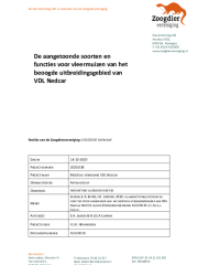 Antea Group heeft de Zoogdiervereniging gevraagd een overzicht te maken van de aangetoonde vleermuissoorten en -functies in het plangebied van de beoogde uitbreiding van VDL Nedcar. Dit overzicht is gebaseerd op de onderzoeksresultaten 2016-20201 en de inschatting van de soorten en functies van april 2020 (Jansen & Limpens 2020a). Een compleet overzicht van aanwezige soorten en functies zijn essentieel voor een inschatting van de effecten en de daaruit voortvloeiende mitigatie en compensatie, alsmede voor het bepalen van de SvI. Het (negatief) beïnvloede gebied is vaak groter dan het eigenlijke ruimtebeslag voor de planuitvoering. Dit ruimere gebied geldt hier als ‘studiegebied’. Er zal zowel woon-, voedsel als verbindend habitat van vleermuissoorten verdwijnen. Er zijn negatieve effecten te verwachten van geluid, lichtuitstraling en extra verkeersslachtoffers door meer verkeersbewegingen. In de planuitvoering is sprake van nieuwe doorsnijdingen, verleggingen van structuren zoals lanen wegbeplanting, beken en beekonderdoorgangen. Ook is er in de bouwfase vaak meer ruimte nodig of zijn er extra maatregelen nodig zoals bronbemaling of leegpompen van vijvers, extra verlichting, of extra toegangswegen. Dit indirecte en tijdelijke verlies aan of effect op habitat moet in ook in beeld worden gebracht. Daarom zal het te beoordelen gebied vaak groter zijn dan het ruimtebeslag van het plan of het plangebied alleen. Voor het studiegebied dat buiten het plangebied valt, is nu ook een overzicht van de aangetroffen functies aanwezig.