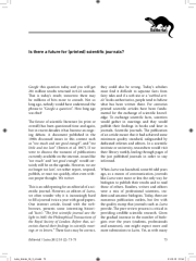 Is there a future for (printed) scientific journals? Google this question today and you will get 281 million results returned in 0.22 seconds. That is today’s result; tomorrow there may be millions of hits more to consult. Not so long ago, nobody would have understood the phrase to “Google a...