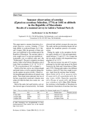 Summer observation of serotine ( Eptesicus serotinus Schreber, 1774) at 1481 m altitude in the Republic of Macedonia. Results of a mammal survey in Galicica National Park (I) This paper reports a summer observation of serotine ( Eptesicus serotinus Schreber, 1774) at high altitude in south-east... -